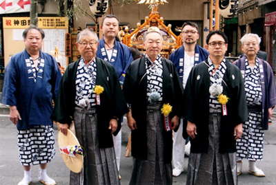 Q.町会活動へ関わり始めたきっかけは? 親父がやってた商売を「お前やれ」って言われて、こっち(多町一丁目町会)に来てからなので、成人してからですね。ただ神田には友達もいたので、その前から多町二丁目町会とか司町二丁目町会には御神輿を担がせてもらってましたね。 Q.町会のご自慢や大切にしていることは何ですか? まずは、とにかくまさに、神田っ子というか、個性の強い諸先輩が多くいらっしゃったことですね。まだ自分が町会に入ったばかりの時ですけど、お祭り(神田祭)が終わって冬になっても、自分が知ってる限りで3人、素足に白い雪駄を履いて町内を歩いてるんですよ。なんでこんな寒いのに裸足なんだろうと思ってたら…。粋がってる、お祭りの余韻を楽しんでるんですって。今はそれがカッコ良かったんじゃないかと思うんです。いかにも神田っぽかった。それを自慢していたのかな。あの時は変な町会だなとも思いましたけど、今はもう“そういう人”がいないことを寂しく思いますね。 そういえば自分がまだ若い時、町会の大先輩に「神田の粋知ってんのか?」って言われてね、その人が言うには『気配りと思いやりとやせ我慢』だって言うんですよ。この“やせ我慢”ってのは見栄を張るっていうことね。無理してでもお金を出すとか、若いのが来れば身銭を切って…とかね。あの感覚も神田っぽいですよね。やっぱりそういう人も多いし、そういう美意識があるんですよ。 神田っていう所は美学があって、ブランドがある町。例えば北海道で飲んでても沖縄で飲んでても「どこから来たの?」って聞かれた時に「神田だよ」で通じるんですよ。それは凄いことでしょ?だからなんとかこういうのを次の世代に残していきたいと思いますよね。 Q.町会活動で楽しいことを教えてください。 毎年行われる町会日帰り旅行は楽しい思い出ばかりですね(以前は一泊旅行をしていて、長崎ハウステンボスや金沢まで行ったこともありますよ)。最近はまた参加者も増えてきて、バス1台30人ぐらいで出かけています。子どもも来るし、賑やかでいいですよ。 あとはお祭りだね。町会のみんなが一致団結して自分たちの役目を務め果たす様子には胸を熱くさせられるし、非常に清々しい気持ちになります。 Q.長く町会に関わってきた中で印象深い出来事はありましたか? 「神田時間」の話をしましょうか。 町会の日帰り旅行でね、朝7時に集合して、7時30分に出発っていうんでカミさんと2人で7時に行ったんですよ。そしたらもう亡くなっちゃった方なんですけど幹事の人に「あんた達だけだよ来てないの!」って。もうみんなバスに乗ってるんですよ。それぐらいに気が短いの。なんでだか知らないけど早いんですよね、30分前にみんないますね。そんな事が色々あって自分は絶対に早め早めに行かなくちゃってなりましたよ。諸先輩を差し置いて俺が遅刻しちゃまずいとかね。もうトラウマだよ。 余談だけど上下関係も厳しい。小学校で1つ上の学年だったとか、中学校で1つ上だったとかがずっと続いてて、80歳になっても「先輩!」なんてやってますからね。小学校とか中学校の段階で関係が出来上がってて、それがずっと変わらないの。あれは面白いよね。 Q.地域のコミュニティの活性化に大切だと思われることは何でしょうか? 大切なのは「あいさつ」ですね。どこで会っても「ああどうも!」って声を掛けられるような関係。何をやるにしてもまずそこからだと私は思ってます。 うちの町会でいいなって思った事があって、お祭りの後の土曜日に小神輿の門づけをするんですけど、子どもたちも来るから、私もちょっと接待っていうかお菓子とかジュースとか出すんです。そうすると終わった時に「中曽根さん、ありがとうございました」って言ってくれるんですよ。これもひとつのコミュニケーション、最初のワンステップですよね。子ども同士はね、たまたま1日一緒に神輿担いだだけでも友達になってたりするし、どこの子か分かんない時もあるけど「次また来たいな」って思ってくれたら最高ですよ。 Q.神田の若い人たちに一言お願いします。 私が神田に来てからどんどん変わっていく街の様子を見てきました。今は人口が6万人を超えるまで回復しましたけど、一時人口が減って、小学校の統廃合で思い出の学び舎が無くなった人もいたりしてね、町会とお祭りは死守しないと神田ではなくなってしまうんじゃないかという危機感もありました。 今の神田は、神田の人間だけじゃなくて、神田以外の人(=神田イズムに同意してくれる人)がいて、上手く融和して今の町会の形が出来てます。ただ、町のみんなが落ち着いた穏やかな生活をするためにはどうしたらいいとか、伝統や文化をどうやって守るのかっていうのは課題のままですけど。 でも、とにかくお祭りでも何でもですが、自分に縁のある人とかその子ども達のために何か残してあげなくちゃっていう気持ちで町会長をやらせていただいていますし、400