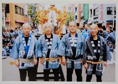 ![]() ご自宅に飾っている神田祭の御神輿の写真 お祭にはいつも親子3代で参加していらっしゃいます |