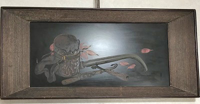 ![]() 漆文化を伝える美術品を特別に見せてくださいました。 こちらの作品は「漆搔き」という漆を採取するための道具を描いたもの。 こうした作品をつくることができる作家さんは今はもうほとんどいないそうです。 |