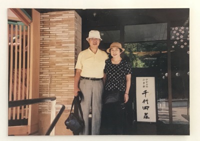 ⑥千代田区内で好きな場所はありますか(お気に入りの店でも。)。 北の丸公園です。 秋の紅葉の後、ミニ盆栽が趣味の主人と紅葉の種を取りに行きました。 (写真はご主人と千代田荘へ旅行した時) |