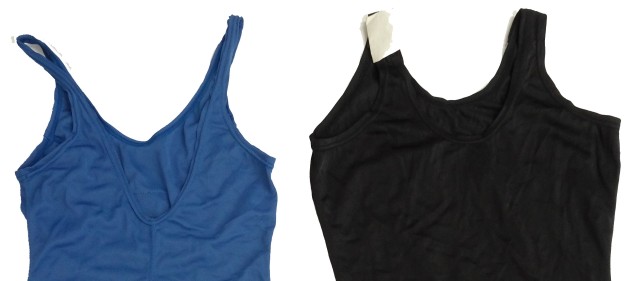 | そしてもう一つ、青い方が4年後のメキシコオリンピックで使用された水着になります。こちらも同じロゴを使用しています。東京オリンピックの時と比べると素材感はほぼ同じですが、一部の生地が二重構造になっていたり、背中の空き具合が大きくなっていたりという変化が見られます。この4年間でも微妙に形の研究が進んでいることが分かります。詳しい資料などは無いのですが、おそらくこの頃は動きやすさなどを重視して水着のデザインをしていたのだと考えられます。 |