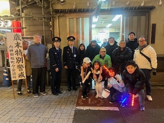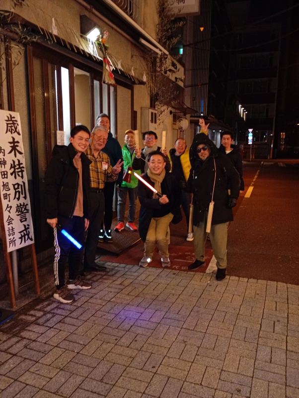 ひろば(みんなの掲示板) 投稿する 年末の風物詩 神田ッ子 2025/12/31(水) 18:10 神田錦町更科前 年末の三大風物詩と言えば「紅白歌合戦」「年越し蕎麦」「除夜の鐘」といったところでしょうか。区内のおそば屋さん、今日は朝からどこもフル稼働のようですね! 提灯イルミネーション 神田駅西口商店街振興組合 2025/12/30(火) 17:59 12月から2月中頃まで神田駅西口商店街では、提灯イルミネーションを開催中です。昨年に引き続き、商店街中ほどの佐竹稲荷神社にて提灯飾りを設えました。提灯の灯りが、賑わいを引き出し活気を感じる通りとなりました。赤い提灯も加わり、写真映えもいたしますので、是非ご覧ください。 歳末特別警戒夜警 内神田旭町町会 2025/12/30(火) 17:30 12/26(金)、29(月)に歳末特別警戒夜警を実施しました。風の冷たい夜でしたが、多くの有志と子供たちが集まり、町内を隈なく回りました。樋口区長、神田警察署長、防犯協会、神田消防署の激励をいただきました。火の元、戸締りには、十分にお気を付けいただき、新年をお迎えください。 夜警 司町一丁目町会 2025/12/25(木) 23:58 今日から二日間行われます。 詰所 金子ビル地下 子供夜警 二日目(12/26) 司町一丁目町会 2025/12/30(火) 16:19 前日から雨は上がりましたが、気温が低く寒い中の夜回りになりました。 夜警 大好き神田事務局K 2025/12/26(金) 17:45 神田鍛冶三会町会 白石町会長、石島青年部長 歳末防犯特別警戒はじまります。 あちらもこちらも コダマ・ヒナ 2025/12/26(金) 19:40 寒いです 錦町二丁目の写真が コダマ・ヒナ 2025/12/26(金) 19:43 頑張ります 錦町一丁目 錦町三丁目第一 連合チーム コダマ・ヒナ 2025/12/26(金) 20:31 錦町一丁目と三丁目第一町会 小川町北二丁目 今日も皆様御苦労様です コダマ・ヒナ 2025/12/27(土) 19:16 昨日より風がないですが、寒いです。 司町二丁目町会 小川町北三町会 夜警は続きます コダマ・ヒナ 2025/12/28(日) 20:18 区長車で移動 内神田鎌倉町会 多町一丁目町会 12月29日 コダマ・ヒナ 2025/12/29(月) 21:06 今日も 最後 コダマ・ヒナ 2025/12/29(月) 21:07 旭町 多町一丁目夜警 多町一丁目担当者 2025/12/29(月) 4:36 12月26日27日の2日間多町一丁目町会歳末夜警を行いました。 町会長出陣! 樋口区長と集合写真 室井青年部長 大勇鮨さんで 入山先生 令和七年歳末夜警 01 錦町三丁目町会 2025/12/29(月) 0:21 12月26日(金)18時より、令和7年の錦町三丁目町会歳末夜警を、例年のように町内のハッソーカフェさんを詰所として実施しました。概ね50名前後の参加者があり、今年一年の締めを兼ねての恒例の夜警です。 年末のテラススクウェア「ハッソーカフェ」 ここで例年通りの夜警です。 スタッフの皆さん万全の準備に篤く御礼申し上げます。 令和七年歳末夜警 02 錦町三丁目町会 2025/12/29(月) 0:31 開所早々に神田警察署長と神田防犯会長の激励です! 開所早々神田警察署長と神田防犯会長の激励訪問 参加者全員による木遣りと神田一本締め 神田警察署長、同防犯会長とともに記念撮影 さあ、令和七年夜警のスタートです! 令和七年歳末夜警 03 錦町三丁目町会 2025/12/29(月) 0:38 年末夜警は懇親の場でもあります。数多くのお客様の訪問がありました。そこに樋口区長も御来所され、しばしの歓談のあと記念撮影です! 氏子総代と学士会館さん みなさまおなじみの区議さんも お~ 区長の御来所です! みんなでハイチーズ! 令和七年歳末夜警 04 錦町三丁目町会 2025/12/29(月) 0:46 その後、神田消防署長とスタッフの皆さんも来所、激励をありがとうございました!集合写真を撮ってから、我が錦町三丁目地域内の夜警に出発です! 神田消防署のみなさんと さあ、錦町三丁目を廻りますよ~ 町内のお店を廻ると大歓迎されます! 町内をくまなく廻るよ~~ 令和七年歳末夜警 05 錦町三丁目町会 2025/12/29(月) 0:55 いよいよ令和七年の夜警もフィナーレです!今年も町内をくまなく廻り、火の始末や戸締まりがきちんとされていることを確認しました!夜警に参加された皆さん、大変お疲れ様でした。良いお年をお迎えください! 町内をくまなく廻ります 「火のようじ~ん。戸締まり用心、火の用心」のかけ声が神田錦町三丁目に響きます! 神田警察通りも実にスッキリですね! 本日の夜警も神田一本締めにて無事にお開き。参加された皆さん、お疲れ様でした~! 良いお年をお迎えください! 令和7年年末夜警 その1 内神田美土代町会 2025/12/27(土) 8:18 12月26日(金)16時より夜警の準備が開始され、18時に全体集合。18時30分より1時間おきに3回、冷風吹き荒れる寒空の下で恒例の「火の用心」を実施。安井建築設計事務所さん、久保工さんの企業会員の皆さんと一般会員のご家族の参加もいただき、楽しい年末の親睦会でした。 令和7年年末夜警 その2 内神田美土代町会 2025/12/27(土) 8:10 今年も安井建築設計事務所さんのご厚意で、1階のロビーが陣屋となり、枯れ葉舞う冷たい風の中でも、温かく明るい一時を快適に過ごせました。 鎌倉町 夜警 鎌倉町担当者 2025/12/27(土) 7:23 12/26〜12/28まで歳末警戒を行ないます。いやぁそ