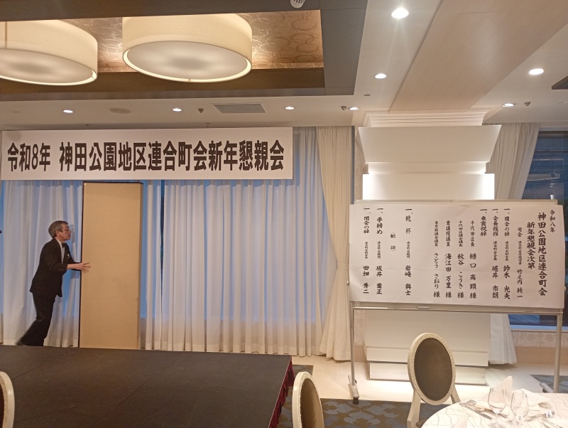 ひろば(みんなの掲示板) 投稿する 新年懇親会 コダマ・ヒナ 2026/1/8(木) 16:48 理事会は午後5時30分から懇親会は6時からです3階の松風の間です 階段は登らず、奥のエレベーターをご利用ください 神田警察 武道始式 コダマ・ヒナ 2026/1/8(木) 14:30 創立150周年記念 だそうです 神田駅西口合同パトロール コダマ・ヒナ 2026/1/7(水) 15:02 寒いですが、頑張ります。 千代田区新年交歓会 コダマ・ヒナ 2026/1/7(水) 11:28 12時開始 開会 コダマ・ヒナ 2026/1/7(水) 12:36 大勢の人、人、人 パフォーマンス コダマ・ヒナ 2026/1/7(水) 12:42 正則学園花活け男子 集合写真 コダマ・ヒナ 2026/1/7(水) 13:35 そろそろ閉会 多町一丁目新年会 多町一丁目担当者 2026/1/5(月) 11:12 1月4日多町一丁目町会で神田明神にて昇殿参拝し、明神会館にて新年会となりました。今年も宜しくお願い致します! 忙中閑あり 神田明神 神田ッ子 2026/1/4(日) 23:05 隨神門 昭和50年に昭和天皇御即位50年の記念として建立。総檜・入母屋造 2026 御神殿 昭和9年に竣功。権現造。鉄骨鉄筋コンクリート・総朱漆塗の社殿 2026 みなさん、それぞれに初詣を済まされたことと思います。明日5日からはほとんどの方々が通常営業でしょうか。初詣であれだけ賑わった神田明神もひと休みです。御神殿には警備員が二人のみしかいません。また明日は仕事始めですから、そこかしこの会社から、数え切れない程の参拝客が訪れることでしょう。忙中閑(神)あり。 多町一丁目町会新年会 コダマ・ヒナ 2026/1/4(日) 12:00 六文銭の御家紋 このあと昇殿参拝です 佐竹稲荷神社初詣 コダマ・ヒナ 2026/1/3(土) 10:51 あけましておめでとうございます 鍛冶三新年会 コダマ・ヒナ 2026/1/3(土) 16:58 銀座アスター 鍛冶三新年会 コダマ・ヒナ 2026/1/3(土) 17:01 神田明神 コダマ・ヒナ 2026/1/3(土) 23:09 大行列 1月3日午後4時15分 初詣 司2担当 2026/1/2(金) 11:30 新年明けましておめでとう御座います。恒例の神田明神へ初詣へ。佐藤町会長はじめ役員、町会員合わせて30名ほどが参拝しました。本年もよろしくお願い申し上げます。 謹賀新年 神田ッ子 2026/1/1(木) 12:36 令和8年あけましておめでとうございます!1月1日になって2時間ほどの神田明神は、参拝まで6時間待ちとのことです!聖橋を渡ったところあたりからこの行列です。凄まじい! 聖橋を渡ったあたり 参道もご覧の通り 境内は参拝客で溢れています お正月は始まったばかり 年末の風物詩 神田ッ子 2025/12/31(水) 18:10 神田錦町更科前 年末の三大風物詩と言えば「紅白歌合戦」「年越し蕎麦」「除夜の鐘」といったところでしょうか。区内のおそば屋さん、今日は朝からどこもフル稼働のようですね! 提灯イルミネーション 神田駅西口商店街振興組合 2025/12/30(火) 17:59 12月から2月中頃まで神田駅西口商店街では、提灯イルミネーションを開催中です。昨年に引き続き、商店街中ほどの佐竹稲荷神社にて提灯飾りを設えました。提灯の灯りが、賑わいを引き出し活気を感じる通りとなりました。赤い提灯も加わり、写真映えもいたしますので、是非ご覧ください。 歳末特別警戒夜警 内神田旭町町会 2025/12/30(火) 17:30 12/26(金)、29(月)に歳末特別警戒夜警を実施しました。風の冷たい夜でしたが、多くの有志と子供たちが集まり、町内を隈なく回りました。樋口区長、神田警察署長、防犯協会、神田消防署の激励をいただきました。火の元、戸締りには、十分にお気を付けいただき、新年をお迎えください。 夜警 司町一丁目町会 2025/12/25(木) 23:58 今日から二日間行われます。 詰所 金子ビル地下 子供夜警 二日目(12/26) 司町一丁目町会 2025/12/30(火) 16:19 前日から雨は上がりましたが、気温が低く寒い中の夜回りになりました。 夜警 大好き神田事務局K 2025/12/26(金) 17:45 神田鍛冶三会町会 白石町会長、石島青年部長 歳末防犯特別警戒はじまります。 あちらもこちらも コダマ・ヒナ 2025/12/26(金) 19:40 寒いです 錦町二丁目の写真が コダマ・ヒナ 2025/12/26(金) 19:43 頑張ります 錦町一丁目 錦町三丁目第一 連合チーム コダマ・ヒナ 2025/12/26(金) 20:31 錦町一丁目と三丁目第一町会 小川町北二丁目 今日も皆様御苦労様です コダマ・ヒナ 2025/12/27(土) 19:16 昨日より風がないですが、寒いです。 司町二丁目町会 小川町北三町会 夜警は続きます コダマ・ヒナ 2025/12/28(日) 20:18 区長車で移動 内神田鎌倉町会 多町一丁目町会 12月29日 コダマ・ヒナ 2025/12/29(月) 21:06 今日も 最後 コダマ・ヒナ 2025/12/29(月) 21:07 旭町 多町一丁目夜警 多町一丁目担当者 2025/12/29(月) 4:36 12月26日27日の2日間多町一丁目町会歳末夜警を行いました。 町会長出陣! 樋口区長と集合写真 室井青年部長 大勇鮨さんで 入山先生 令和七年歳末夜警 01 錦町三丁目町会 2025/12/29(月) 0:21 12月26日(金)18時より、令和7年の錦町三丁目町会歳末夜警を、例年のように町内のハッソーカフェさんを詰所として実施しました。概ね50名前後の参加者があり、今年一年の締めを兼ねての恒例の夜警です。 年末のテラススクウェア「ハッソーカフェ」 ここで例年通りの夜警です。 スタッフの皆