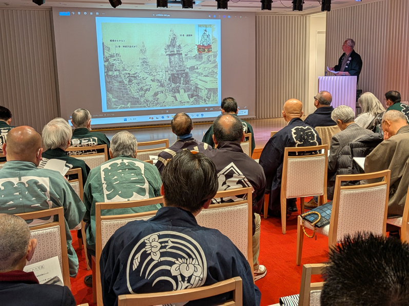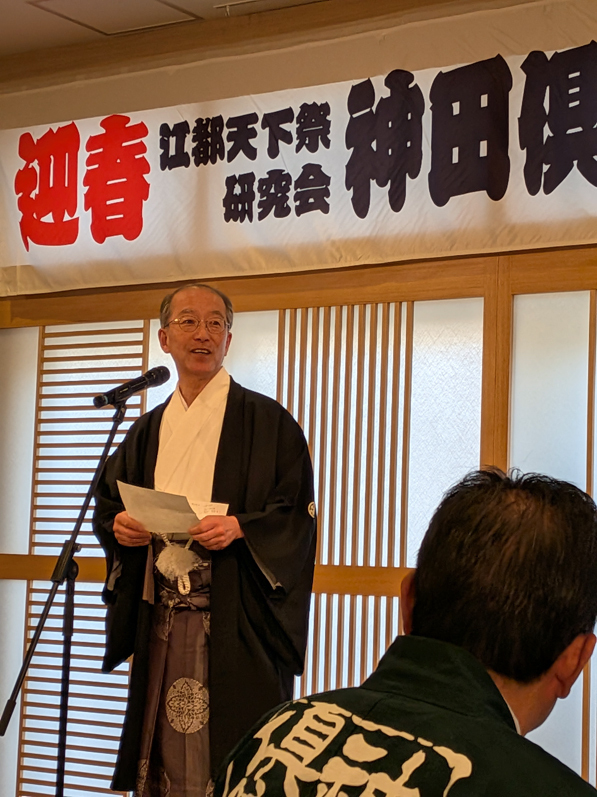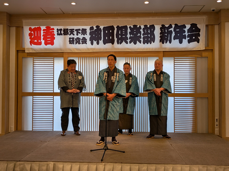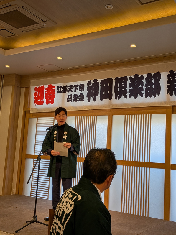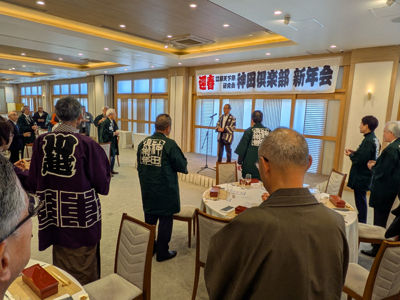 ひろば(みんなの掲示板) 投稿する 令和8年度 勉強会・昇殿参拝・新年会 その1 江都天下祭研究会 神田倶楽部 2026/2/1(日) 21:38 1月31日(土)に、神田明神にて、江都天下祭研究会神田倶楽部の令和8年度新年会が開催されました!当日は快晴に恵まれ、まずは文化交流館4F令和の間にて勉強会からスタートです。講師は昨年『発掘! 神田の物語』(本書)を上梓された後藤氏。本書所収の「91 明治十七年の神田祭を撮った男」をさらに掘り下げた内容で、浅草の写真師・「江崎礼二」が撮影した写真や、スウェーデンの民族学博物館で発見された古写真を基に、「京屋の大時計」に示されている時刻から当時の山車の動きを分析するという画期的な内容でした。 快晴!令和の間の梅が満開です! これが『発掘! 神田の物語』 「91 明治十七年の神田祭を撮った男」 勉強会の様子 令和8年度 勉強会・昇殿参拝・新年会 その2 江都天下祭研究会 神田倶楽部 2026/2/1(日) 21:43 熱心な受講者から質問が相次ぐなど、勉強会はとっても盛り上がりました!次いで本殿にて昇殿参拝の後、神田明神会館に場所を移し、新年会・懇親会のスタートです!開会後、まずは江都天下祭研究会 神田倶楽部会長によるご挨拶。続いて来賓の千代田区長にお話しをいただきました。 みな熱心に聴いています 神田倶楽部幹部 まずは会長ご挨拶 続いて区長のお話し 令和8年度 勉強会・昇殿参拝・新年会 その3 江都天下祭研究会 神田倶楽部 2026/2/1(日) 21:49 また、続いて神田神社宮司より祭礼文化を中心としたお話しを賜り、乾杯の発声へと続きます。乾杯は遠州横須賀三熊野神社ご関係者による御発声です。いよいよ新年会の始まり始まり! どこのテーブルも盛り上がってます!続いて、各地区祭礼関係団体のみなさんによる近況報告や、今年の祭礼の話などが陸続と続きます! 宮司にもご登壇いただきました! かんぱいッ!! 会場は大盛り上がり! 各地より近況報告と…… 令和8年度 勉強会・昇殿参拝・新年会 その4 江都天下祭研究会 神田倶楽部 2026/2/1(日) 21:52 楽しかった新年会もそろそろお開き、四区五番組のカシラによる木遣りにて神田一本締め!みなさんお疲れ様でしたッ!!本年もどうぞよろしくお願い申し上げます! 今年の祭礼の話が つづきます! 楽しい時間はあっという間! 皆で集合写真です。本年もどうぞよろしくお願い申し上げます。 錦町三丁目第一町会新年会 コダマ・ヒナ 2026/1/31(土) 18:14 堀井会長の連合町会長就任お祝い 新年会@銀座アスターお茶の水賓館 司ニ担当 2026/1/31(土) 10:18 1月24日に司町二丁目新年会が開催されました。来賓に樋口区長もお越しになりました。抽選会も行われ、楽しい集いとなりました。 連合長寿会新年会 コダマ・ヒナ 2026/1/27(火) 12:23 神田公園地区からは、3名が参加しています。 手塚連合長寿会会長 宮尾連合長寿会副会長 ババチャリ散歩、両国辺り 多貮の諫皷鶏 2026/1/25(日) 16:08 寒波の中今日もババチャリ散歩へ!清洲橋を渡って清澄辺り、初場所頑張っている阿炎の錣山の部屋を見つけました。芭蕉記念館へ。昨今の俳句ブーム、若い人の見学が多かったのにはびっくり。庭に白梅、サザンカが咲いていました。そこから北上して両国へ、大相撲で賑わっていて、プーンとビン付けの香りがすると思ったら力士が国技館へ向かって歩いていました。国技館の前は入場する人と出待ちの人がいっぱい。今日はどうなるのか、駒形橋を渡って急いで帰宅しました。 芭蕉記念館 白梅 国技館へ千秋楽へ 国技館 駒形橋の欄干 町会と商店会の合同新年会 2 北城 2026/1/22(木) 23:57 町会と商店会の合同新年会は、懇親会に進み各々の自己紹介挨拶から、美味しく楽しく懇親を深めて、協力し合って地域を盛り上げて、より良い間柄を深めました。 前町会長て相談役の中締め後に、解散致しました。 小川町一丁目南部町会・商店会一栄会合同新年会 1 北城 2026/1/22(木) 23:39 毎年恒例の町会と商店会の合同新年会を1月22日、竹橋KKRホテル「たけばし」で開催しました。 新町会長と商店会長の挨拶の後乾杯に進み、懇親会を始めました。 総勢30名の小じんまりの町会ですが、商店会も、共同して各イベントを行い盛り上げて、より良い地域を作り上げております。 衆院選について大切なお知らせ 大好き神田事務局K 2026/1/22(木) 13:49 ・今回は準備期間が短い関係で、投票所入場整理券の発送が通常より遅れることが見込まれます。※千代田区の選挙人名簿に登録されていれば、入場整理券がなくても投票が可能です・最高裁判所裁判官国民審査の期日前投票は、1月31日(土)までできません。※最高裁判所裁判官国民審査を含めたすべての選挙の投票ができるのは、2月1日(日)以降です<問い合わせ>千代田区選挙管理委員会事務局電話:03-5211-4268 新年会を開催しました 内神田旭町町会 2026/1/21(水) 18:01 1月17日(土)17時より魚海船団本店にて、新年会を開催しました。30名近くの町会員の方に出席いただき、時間いっぱい盛り上がりました。各会員の自己紹介もユーモアを交え、楽しい