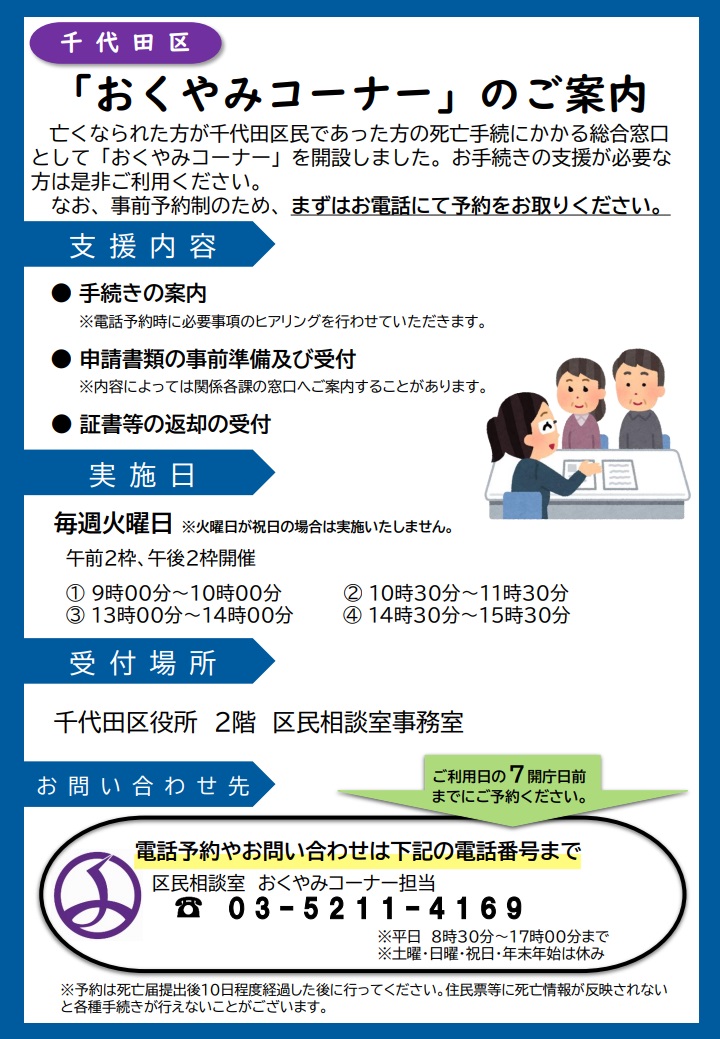 千代田区民の方がなくなられた後の手続きをお手伝いします。