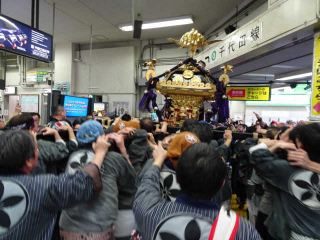 駿河台方面から御茶ノ水駅への神輿巡行