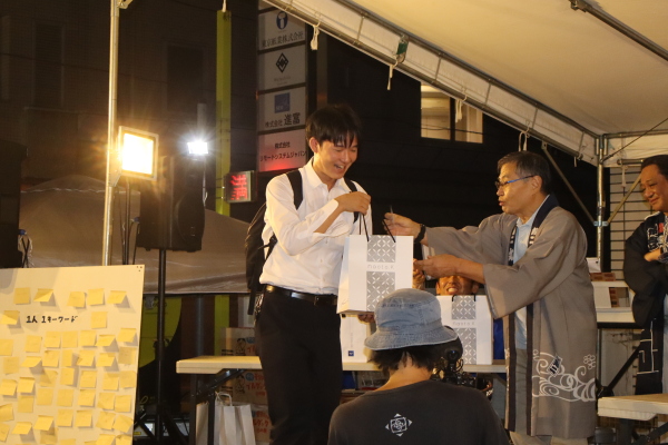 登壇され皆さんからお祝いをされた方には、堀井町会長からプレゼントがありました🎁